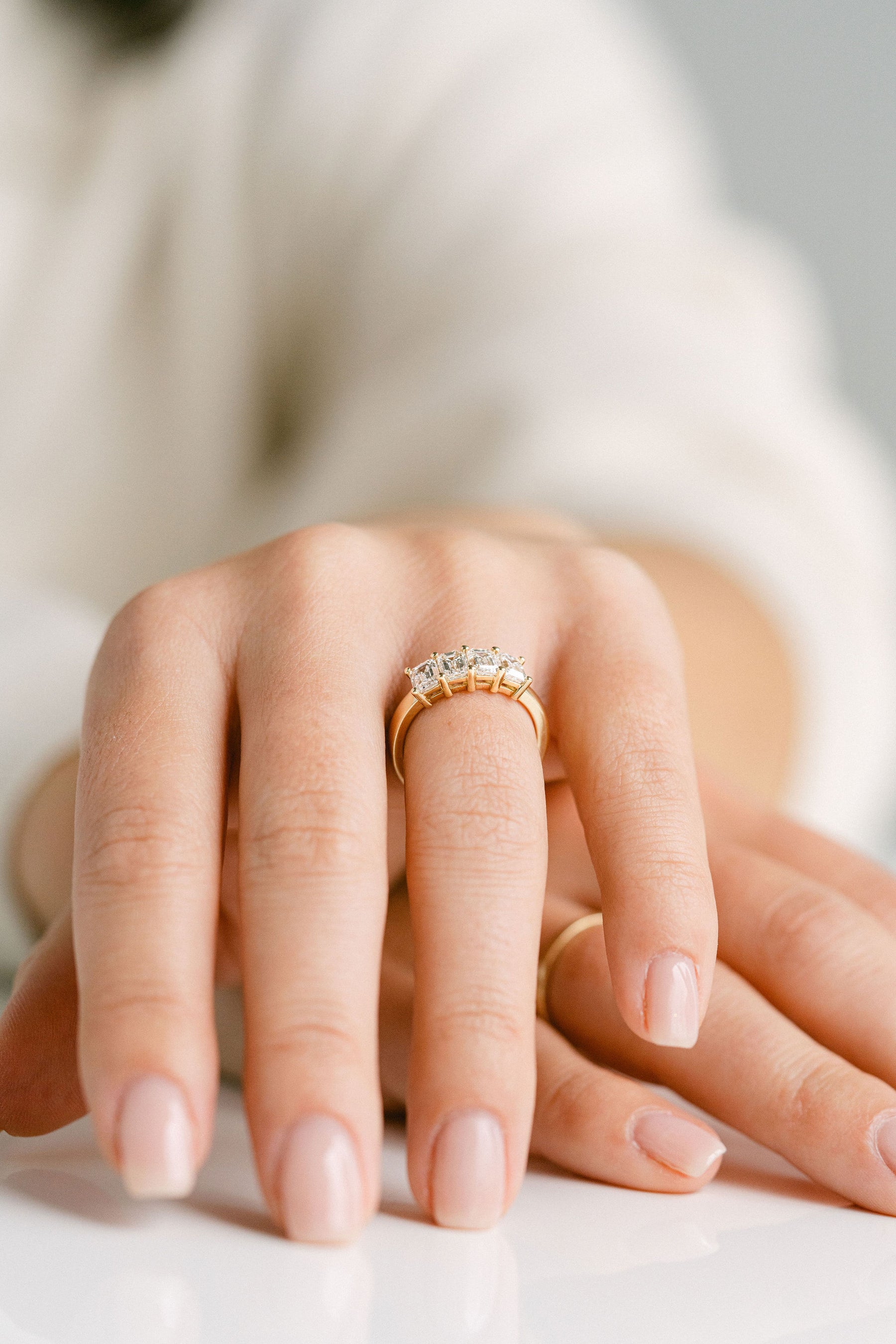 A notable Cavalier design, this 4-stone emerald cut Diamond band is a true classic in it's crisp and modern setting. Wear it as an engagement band, wedding band, or right hand ring.