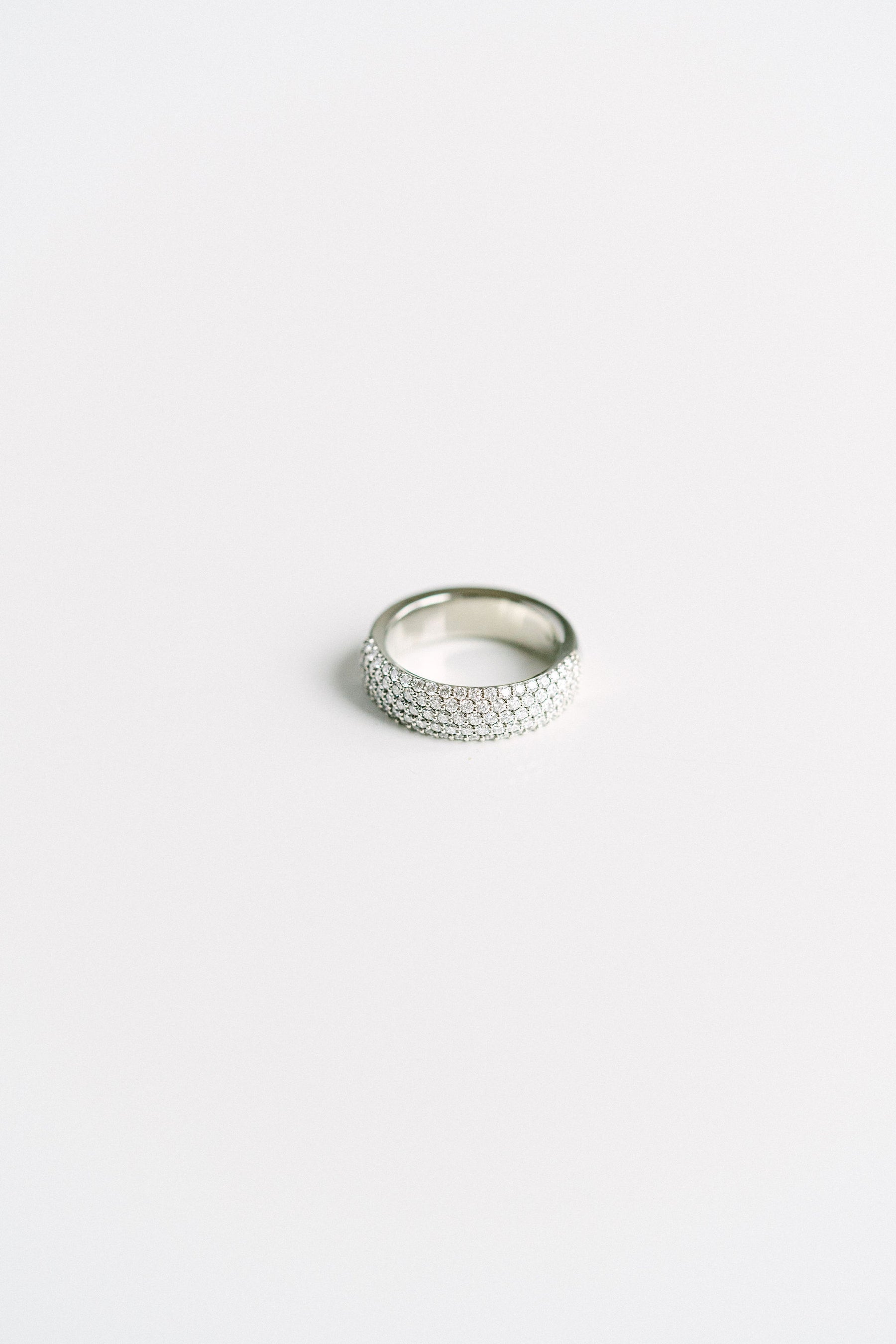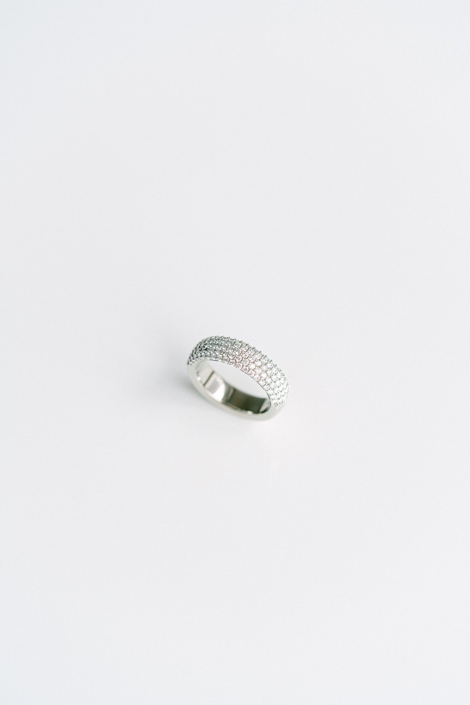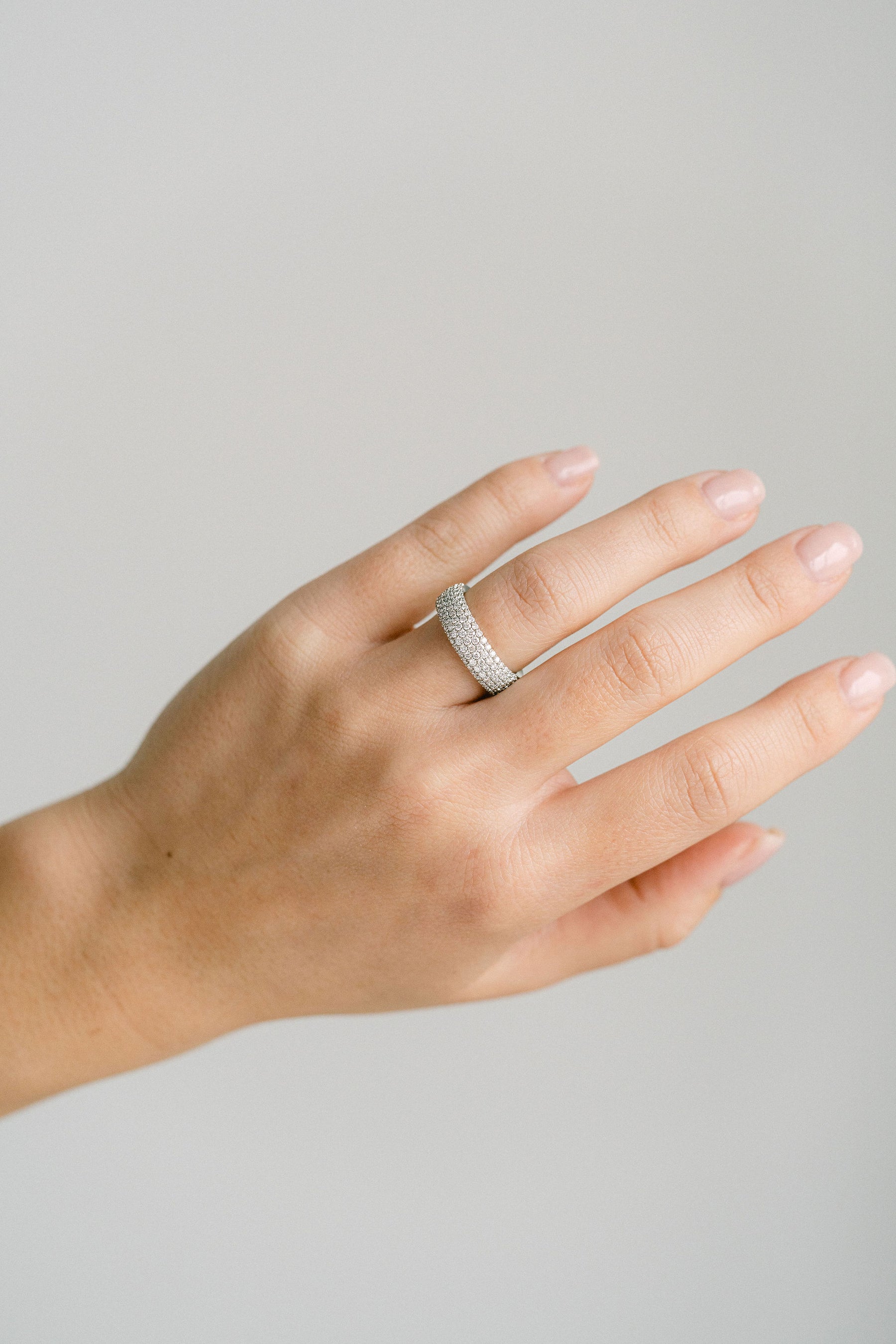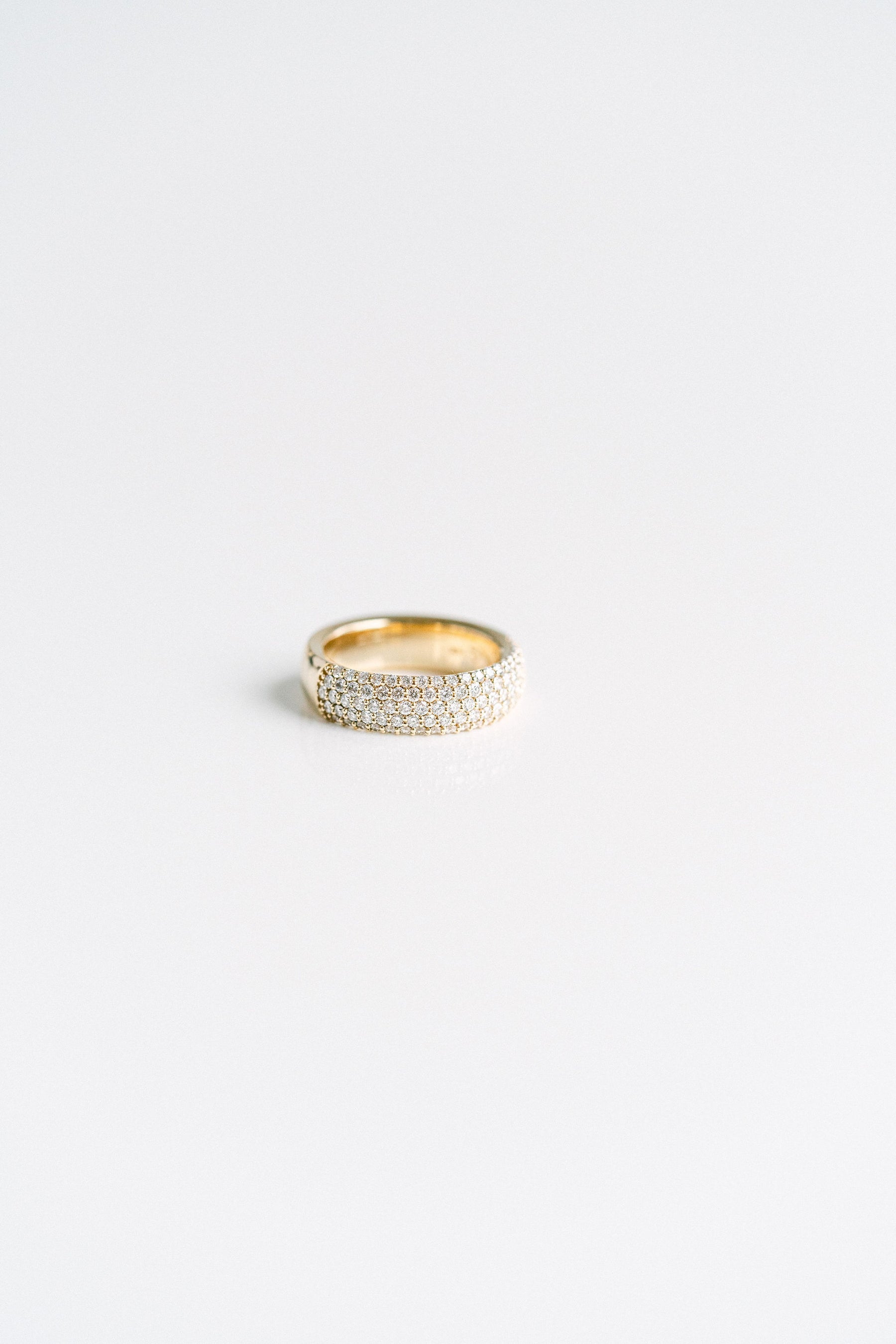 Bold and distinctive in it's style, this solid gold micropavé Diamond band is curved for a comfortable, substantial fit. Add to your stack with this chunky, chic piece.