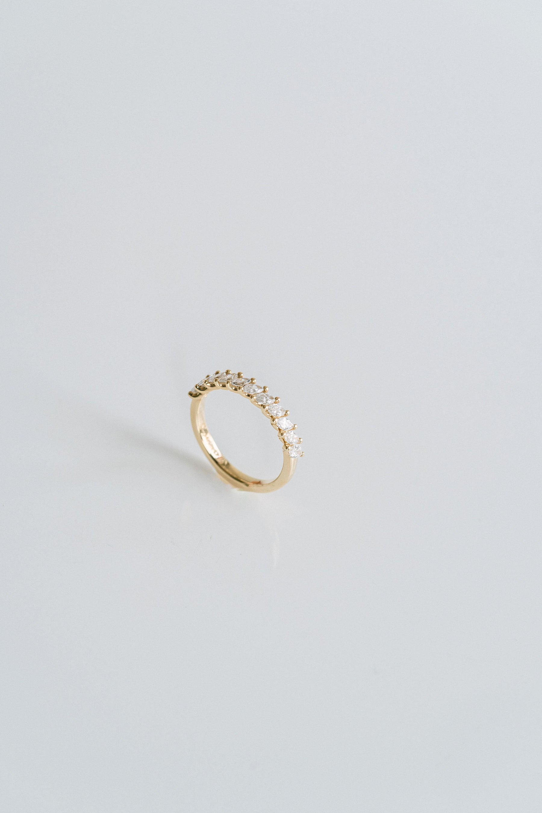 11-stone marquise cut Diamond scallop band. Each stone set on a slight subtle bias for symmetry and a finger-flush look with a playful, organic silhouette. Style as a wedding band or an every day accessory piece to add to your stack.