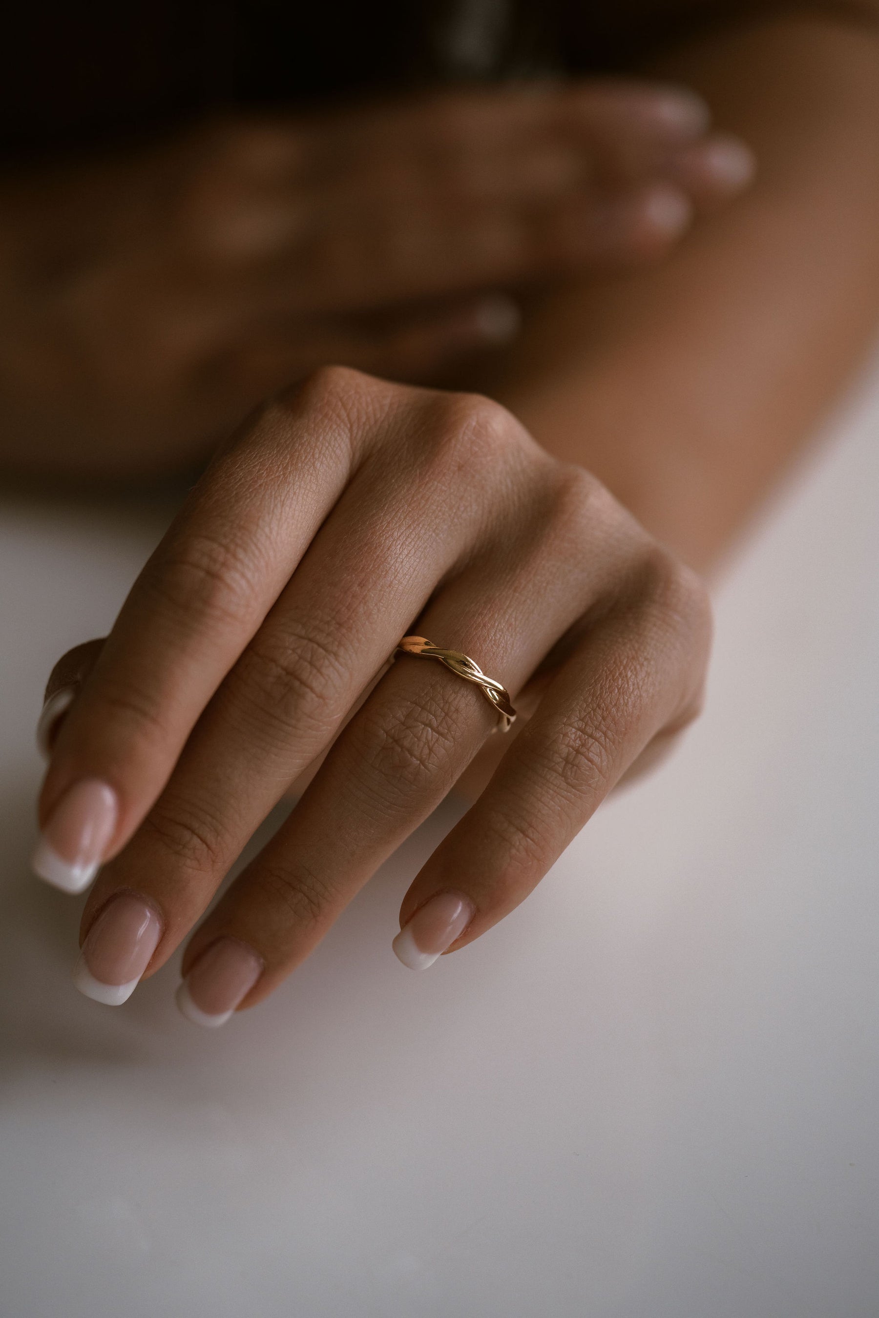 A simple and sophisticated gold band with an infinity weave detail. Style as a wedding band or stacking piece for any finger.