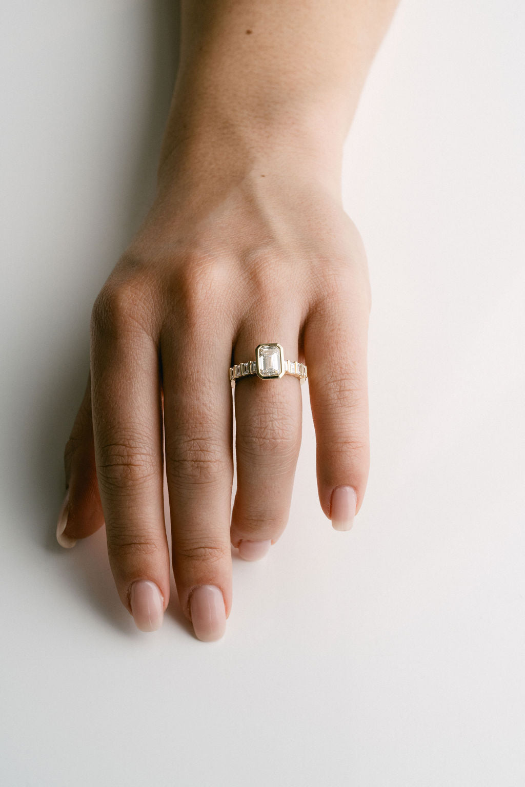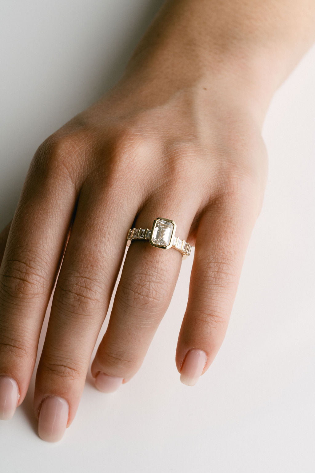 Emerald Cut Diamond Ring With Bar Set Baguette Diamond Band - 3mm