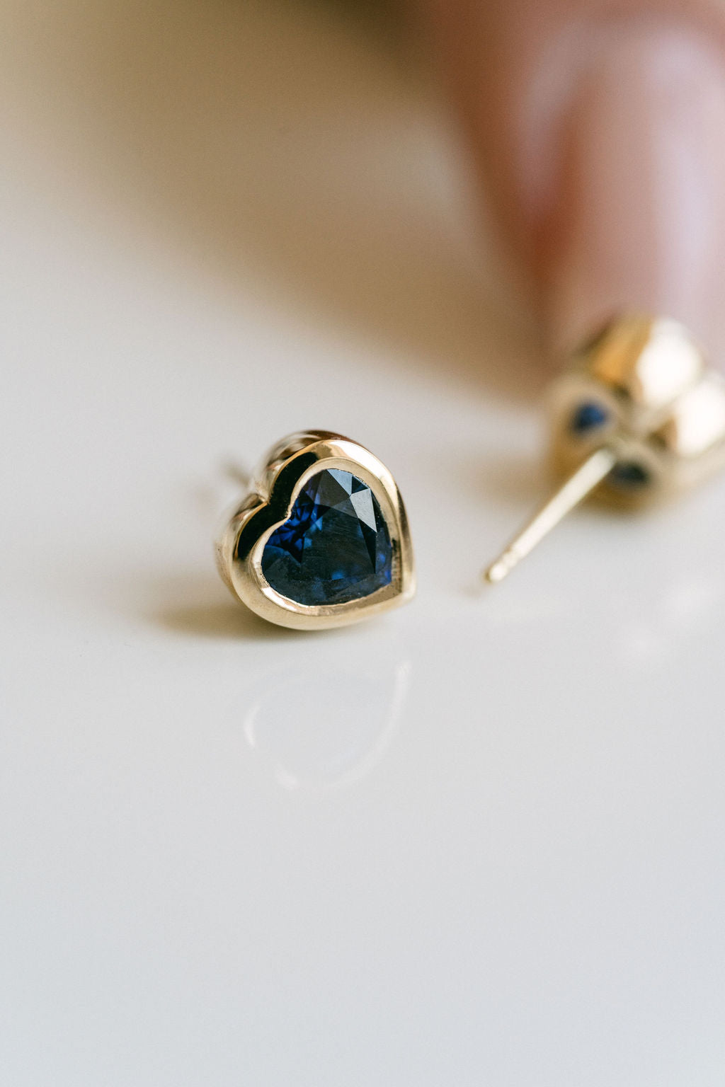 Heart Shape Blue Sapphire Bezel Studs