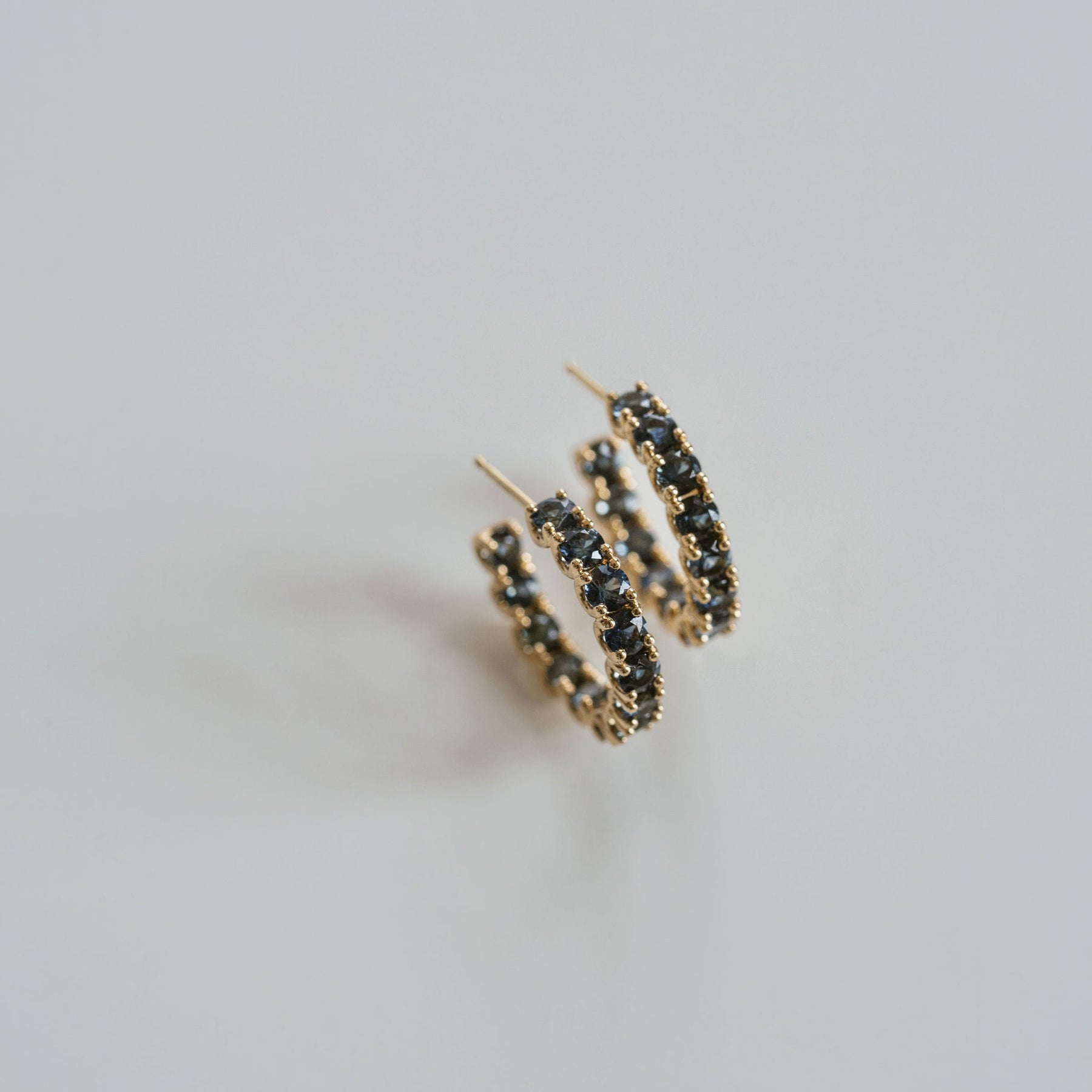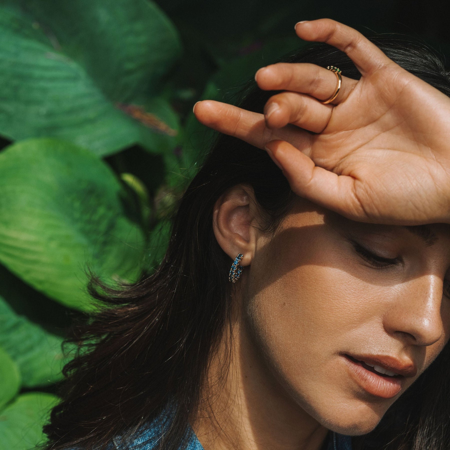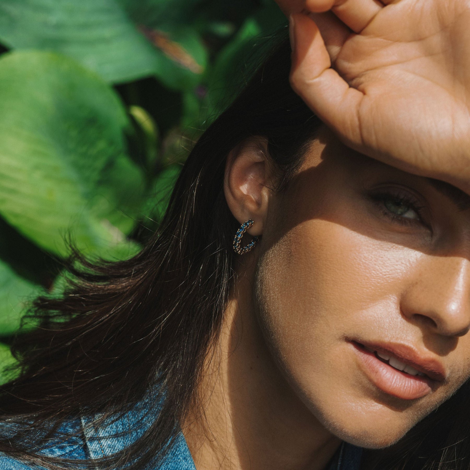 Our newly re-designed Dahlia scallop style in a classic Diamond hoop design. The stones in this piece are curved for a symmetrical and circular shape, flipping direction half-way to create the look of front-facing stones the whole way around. Style these as an everyday piece or special occasion wear.