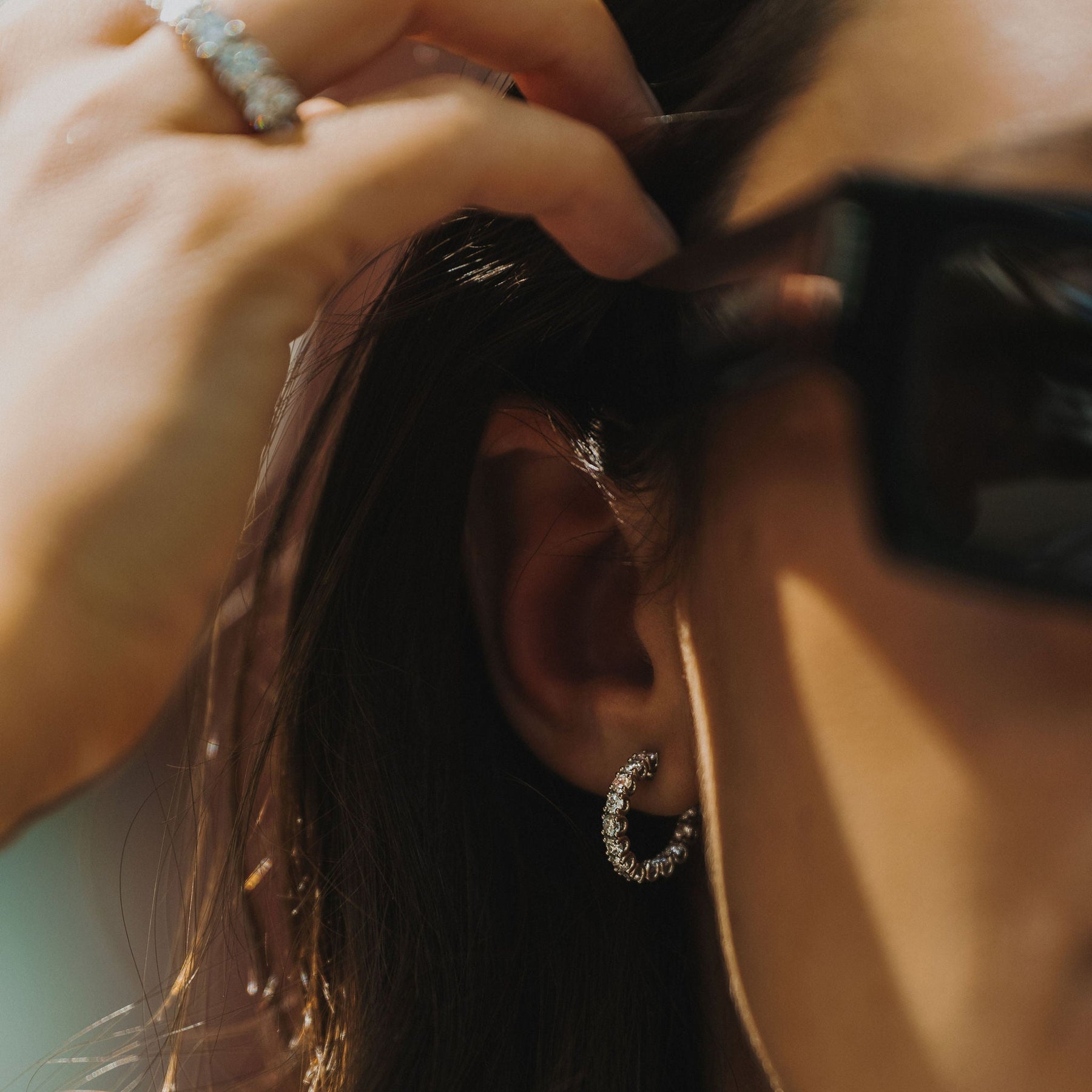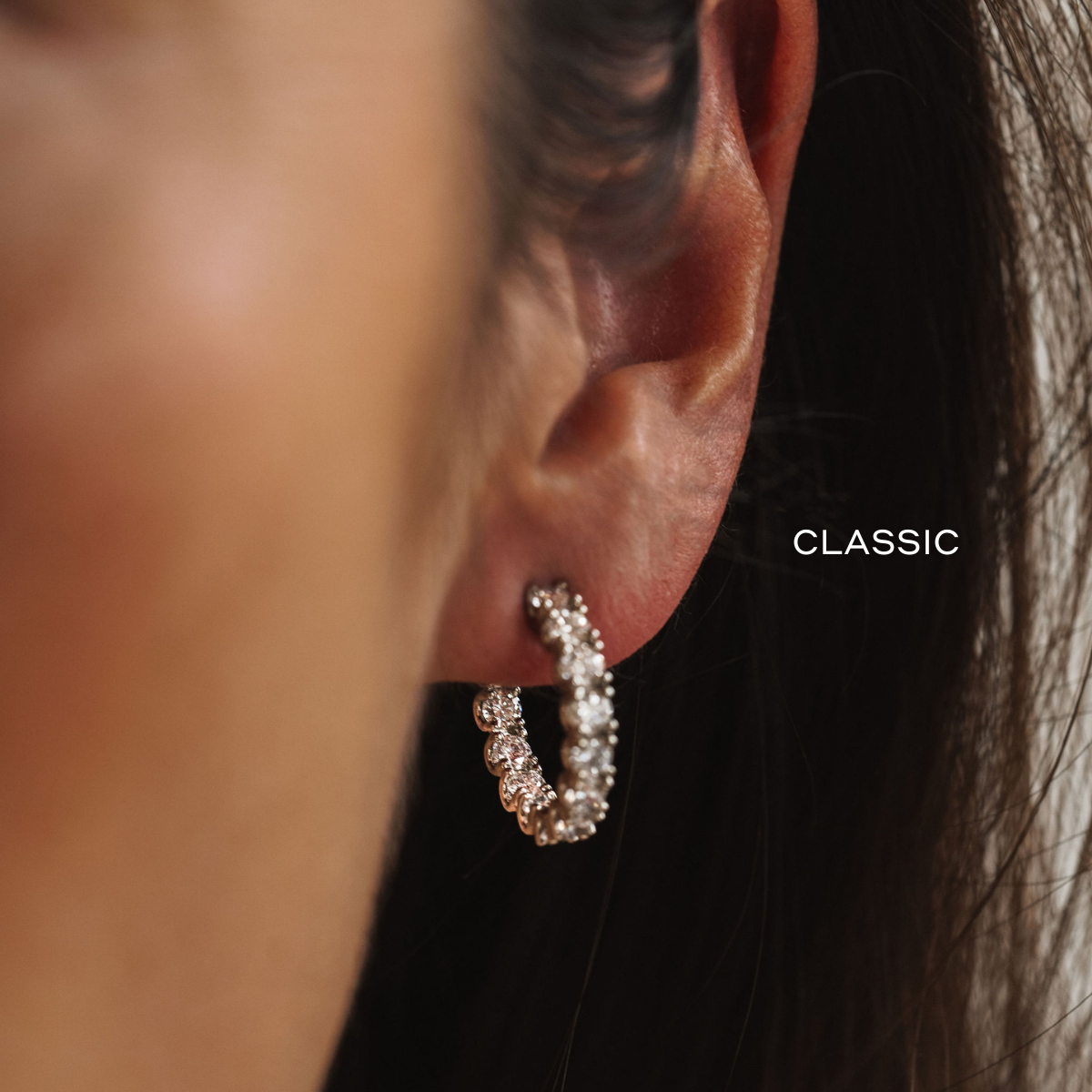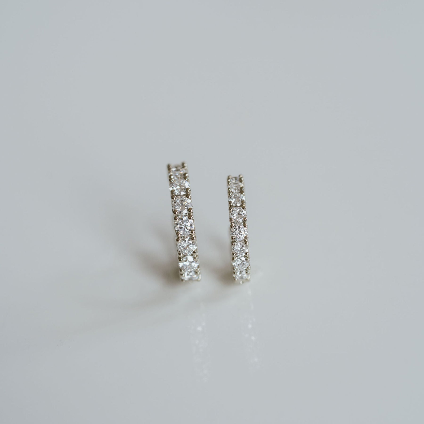 Our newly re-designed Dahlia scallop style in a classic Diamond hoop design. The stones in this piece are curved for a symmetrical and circular shape, flipping direction half-way to create the look of front-facing stones the whole way around. Style these as an everyday piece or special occasion wear.