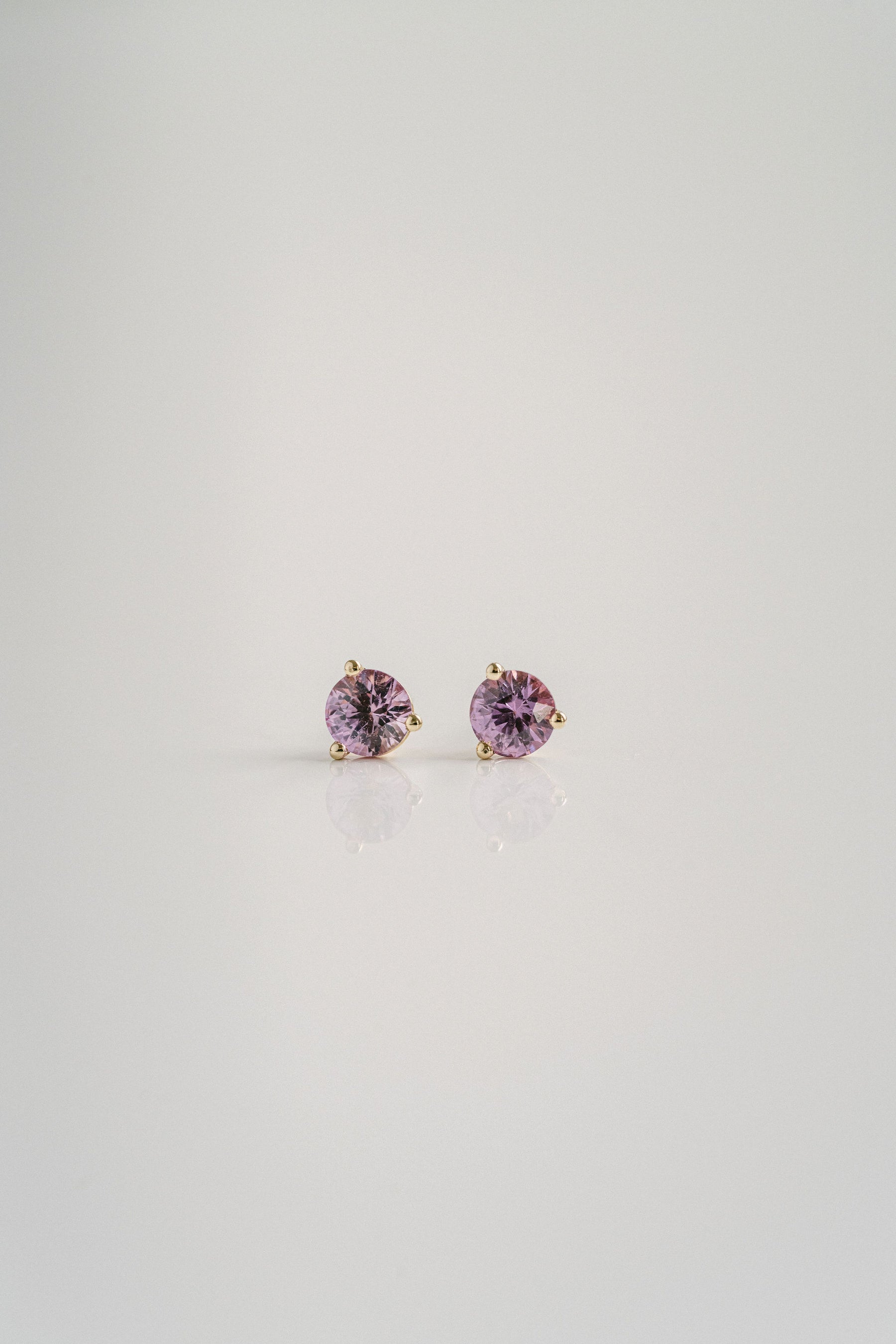 A pretty pair of round pink Sri Lankan Sapphire studs in a classic 3-prong martini setting.