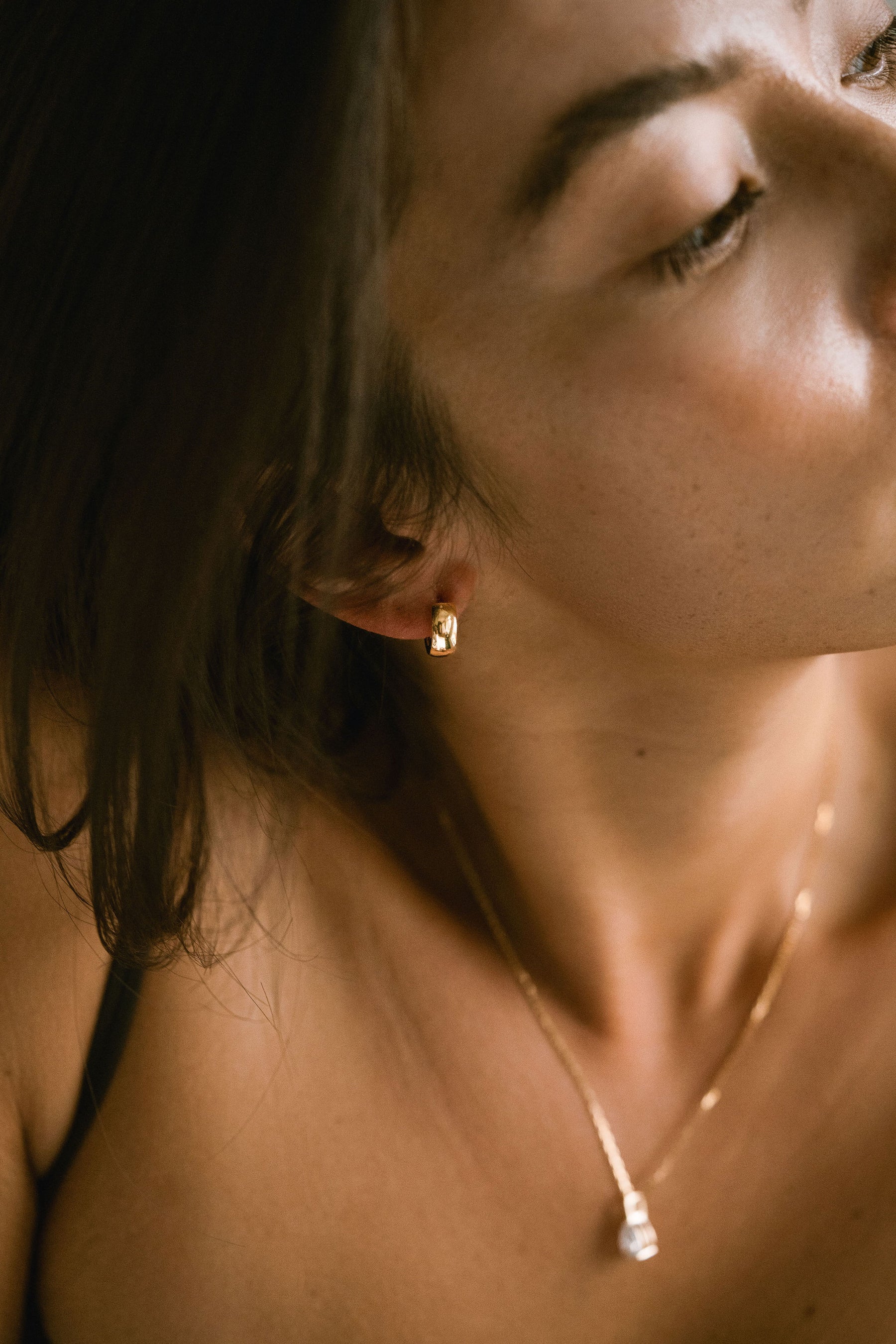 A sleek and solid pair of gold huggie-style hoops. You'll reach for these everyday.