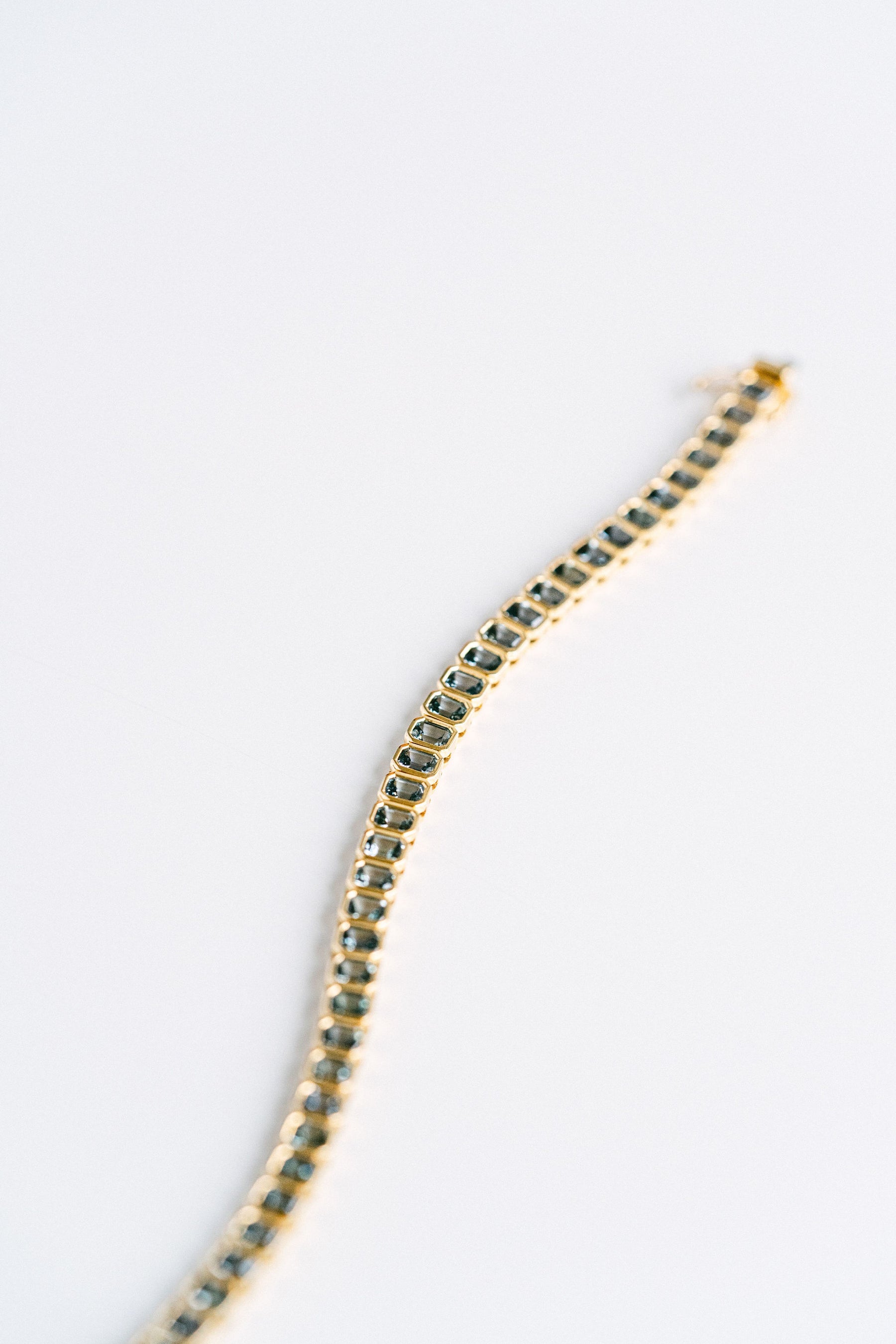 Stack your wrist with this dark teal blue-green emerald cut Sri Lankan Sapphire bezel tennis bracelet. Style as a juicy everyday accessory piece, or slap it on for special occasions.