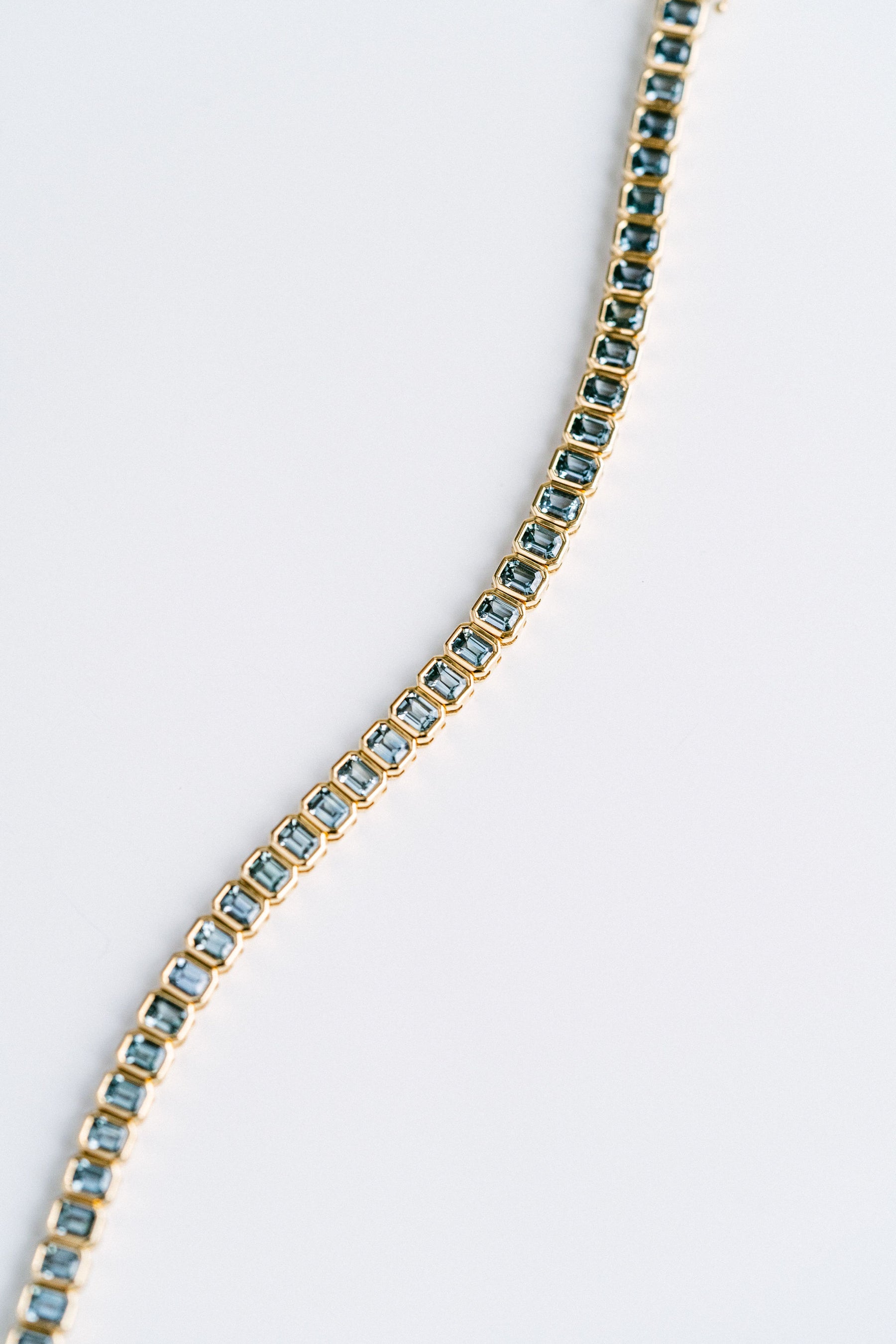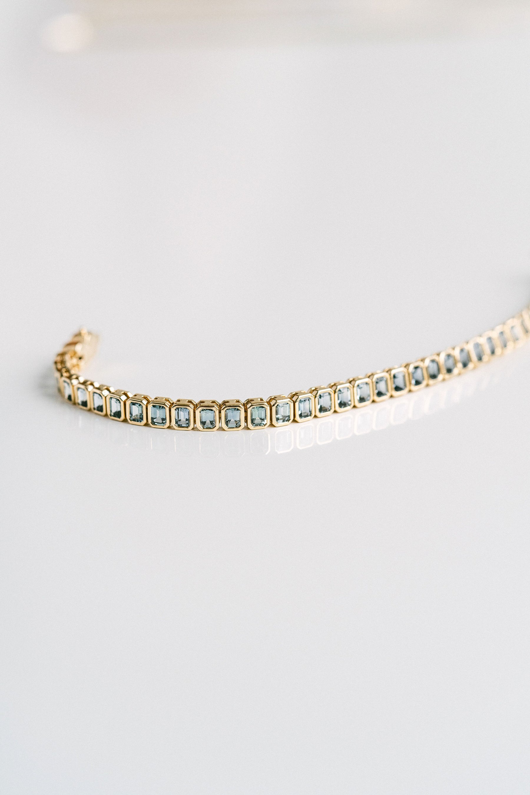 Emerald Cut Blue-Green Sapphire Bezel Tennis Bracelet