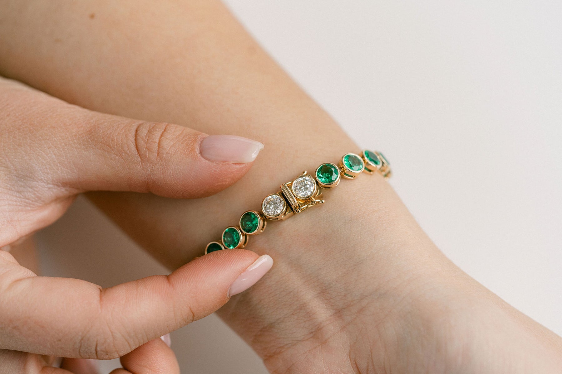 Round Emerald Bezel Tennis Bracelet With Diamonds