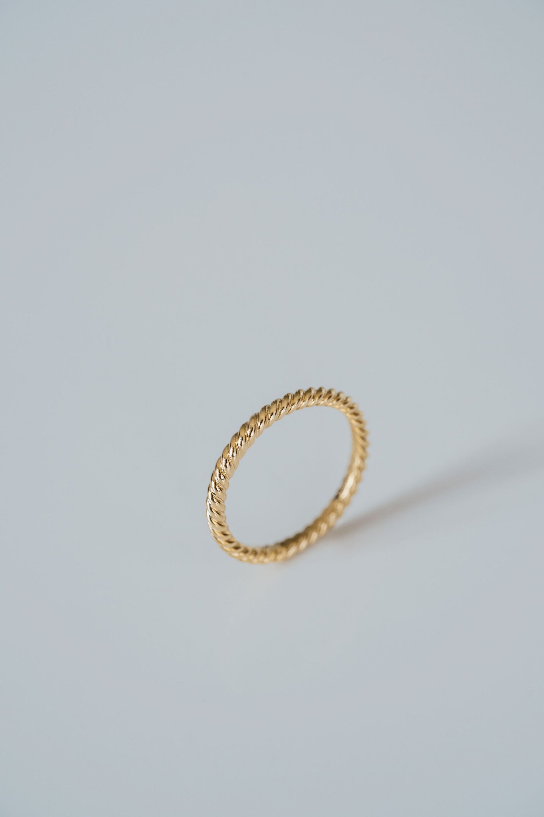 The Rope Twist Band features a continuous twist of polished gold that catches the light from every angle. Its delicate movement and timeless form make it a refined choice for stacking or effortless wear on its own.