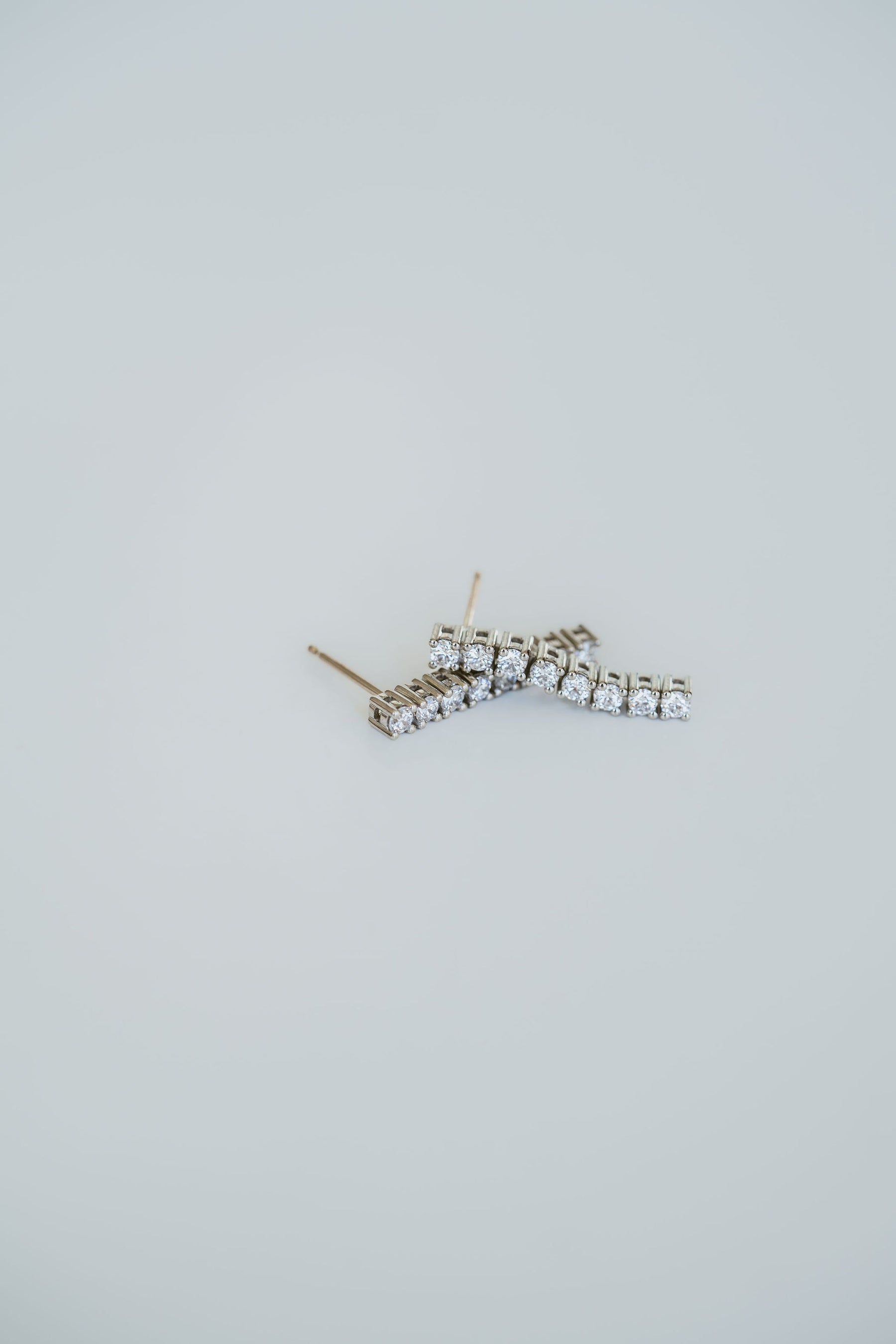 A modern play on the classic tennis bracelet, the Courtside earrings balance refined luxury with intention. Their linear diamond design feels elevated yet versatile. Elegant enough for evening, effortless enough for every day.