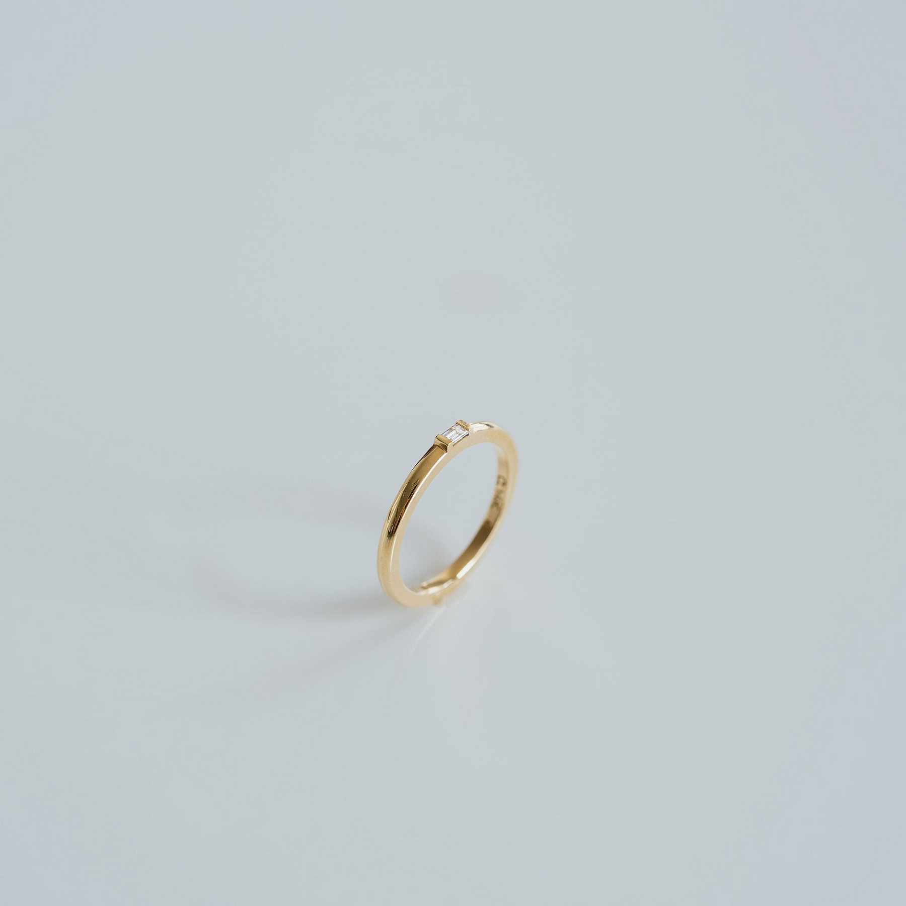 Defined by clean lines and understated elegance, the Single Baguette Diamond Band features a delicate gold band set with a single baguette diamond. Its geometric form and subtle sparkle make it a refined choice for everyday wear or as a modern stacking piece.