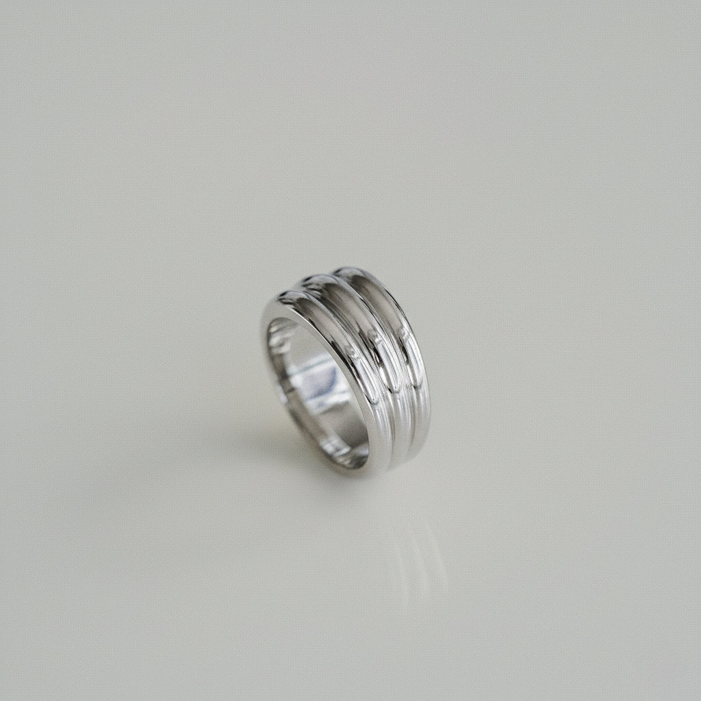 The thick, domed and tapered detail of the Aria gold band is designed for a balanced and substantial, weighty feel. This ring is as much a statement as it is a forever piece. Style as a chunky wedding band or accessory ring for any finger.