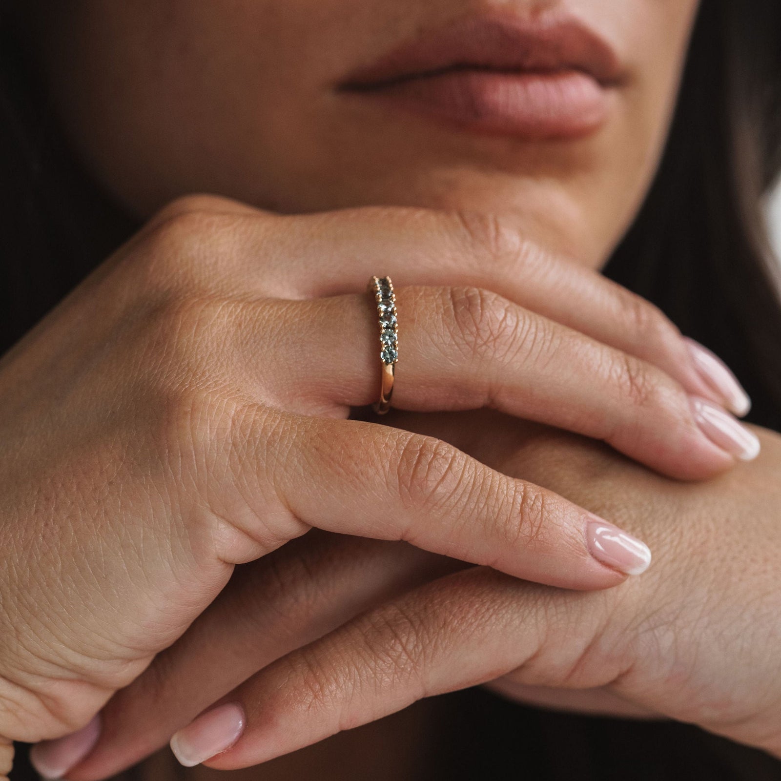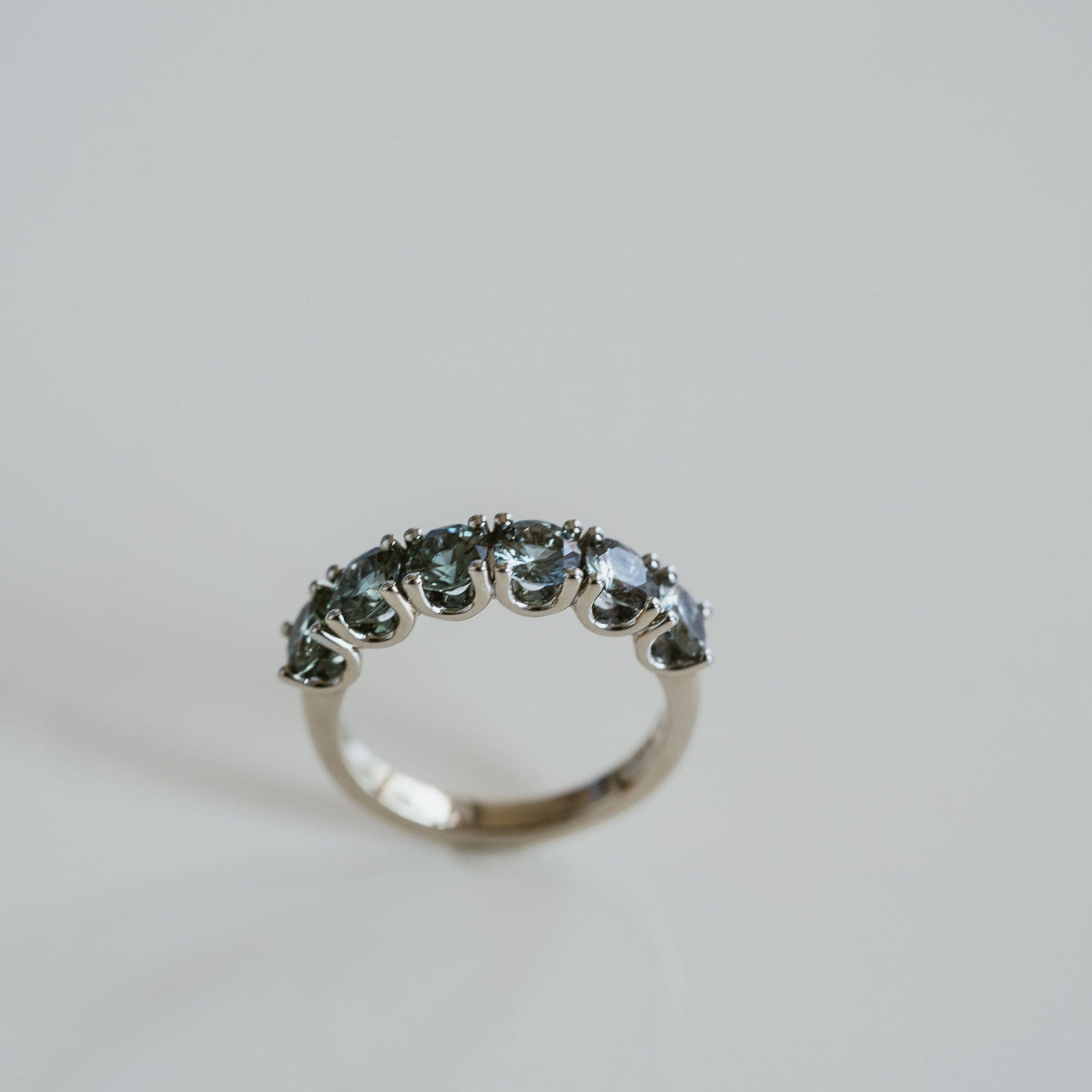 Round Blue-Green Sapphire Pavé Band - 2.5mm