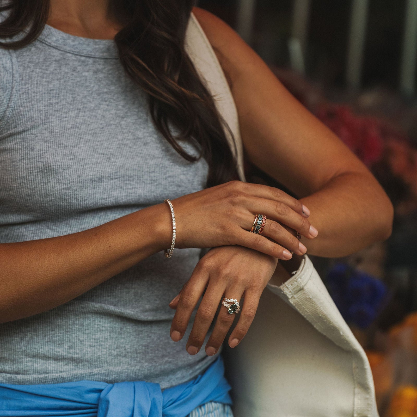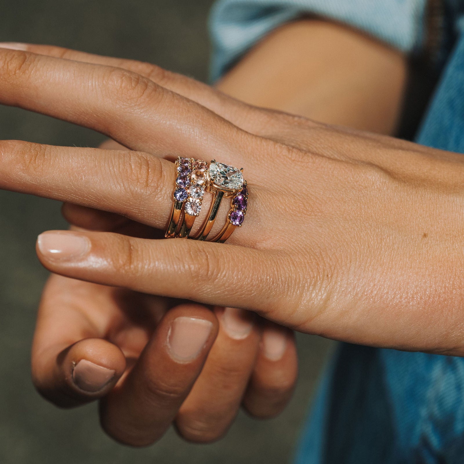 Exclusively designed by the Cavalier team, browse our collection of one-of-a-kind gemstone bands. Style them as a wedding band, a unique engagement ring, a stacking ring or right hand ring for a pop of colour! All stones are sourced directly by us from mines around the globe. Visit our 'Book Appointment' page to inquire about a custom piece, or head to our 'Contact' page to get in touch with us for more information.