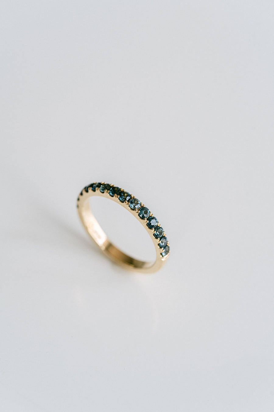 Add this blue-green Sri Lankan Sapphire pavé gemstone band to your stack. An earthy pop of colour into your rotation.