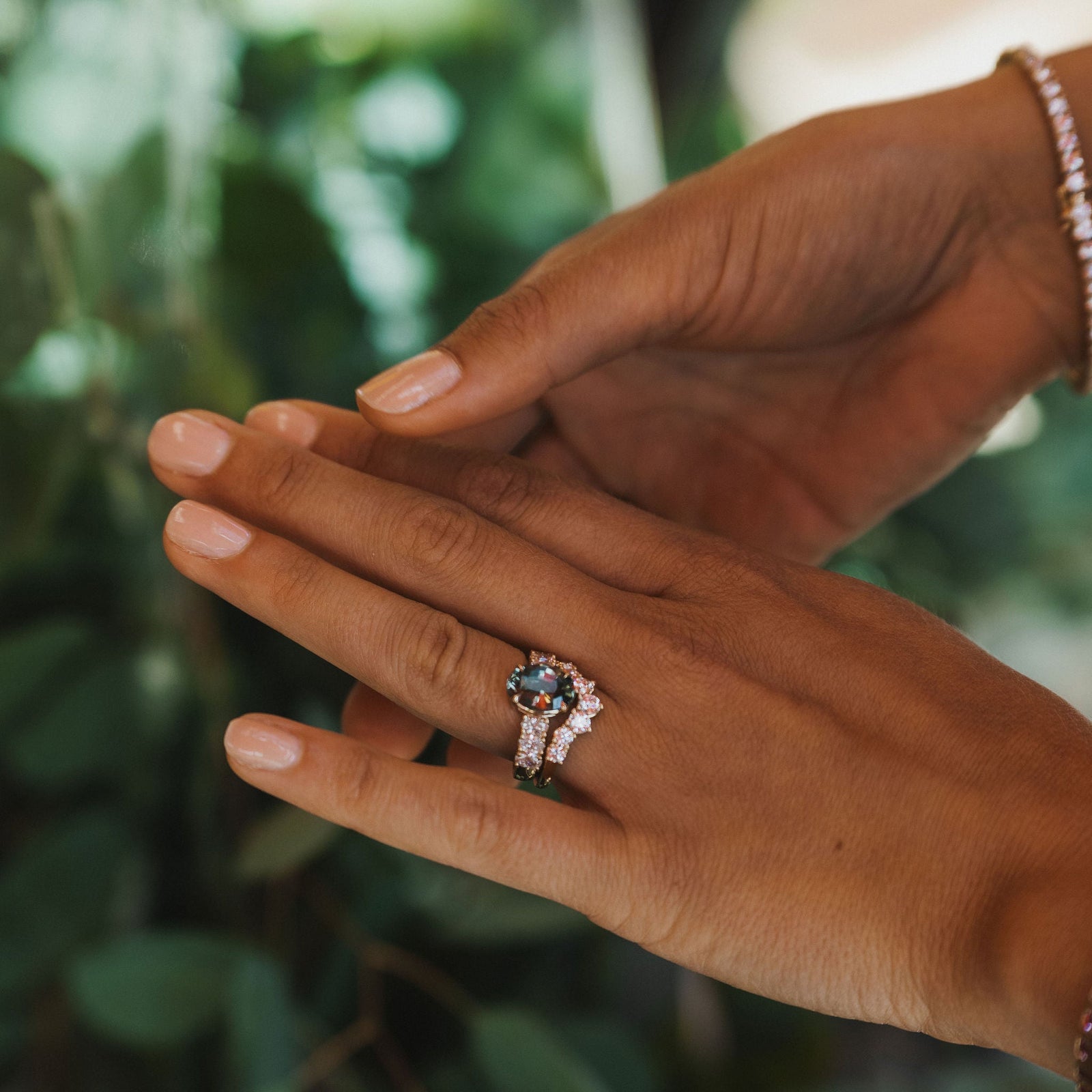 Rooted in the quiet strength of the dahlia, this collection took inspiration from the flower’s layered beauty— each petal a symbol of devotion, resilience, and grace. We’ve reimagined our signature scallop setting for a new silhouette that balances architectural integrity with softness. The result is a collection that holds romance at its core, crafted to last, and made to be worn every day.