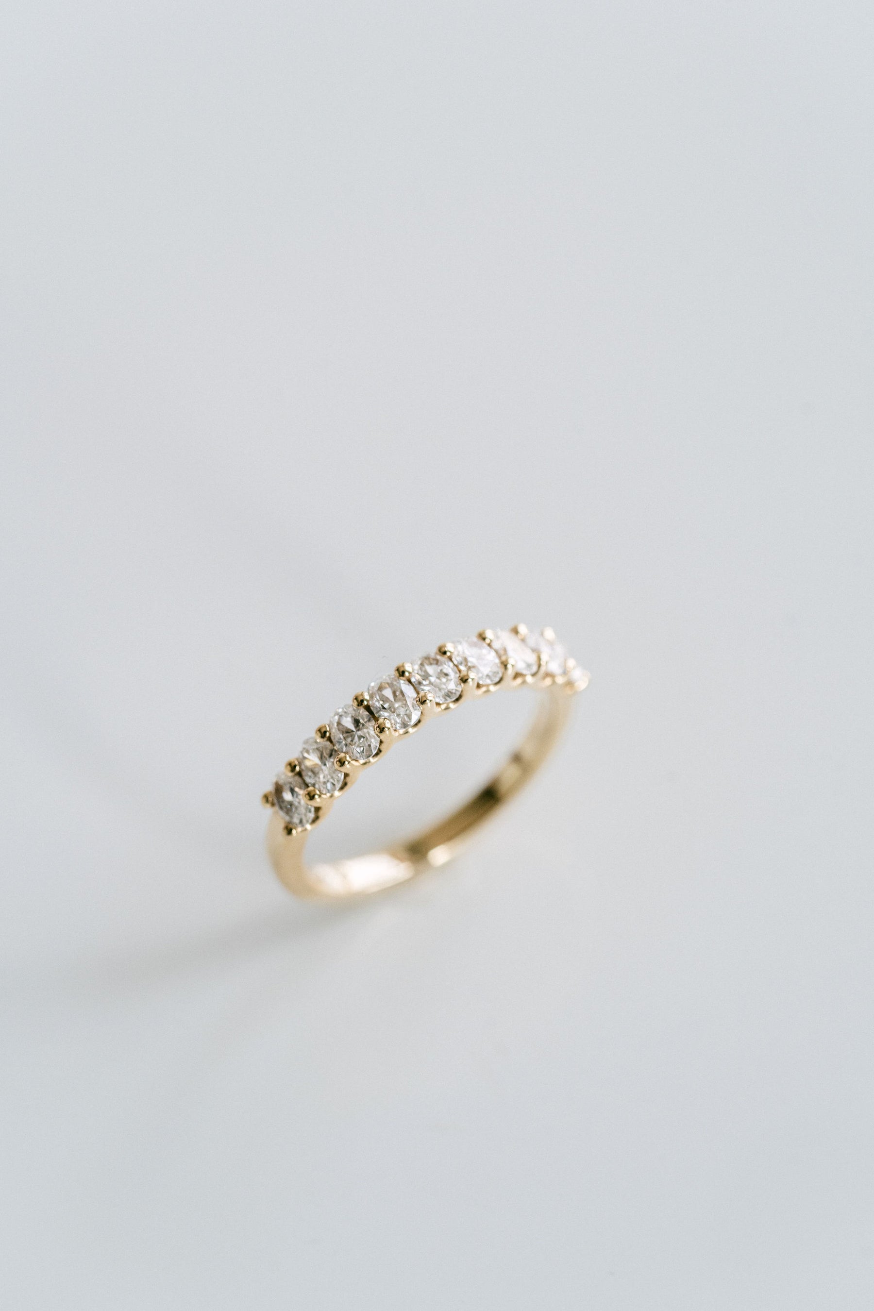 A 9-stone oval Diamond scallop band. Classic, continuous and symmetrical. Style as a unique engagement band, wedding band or everyday accessory band to add to your stack.